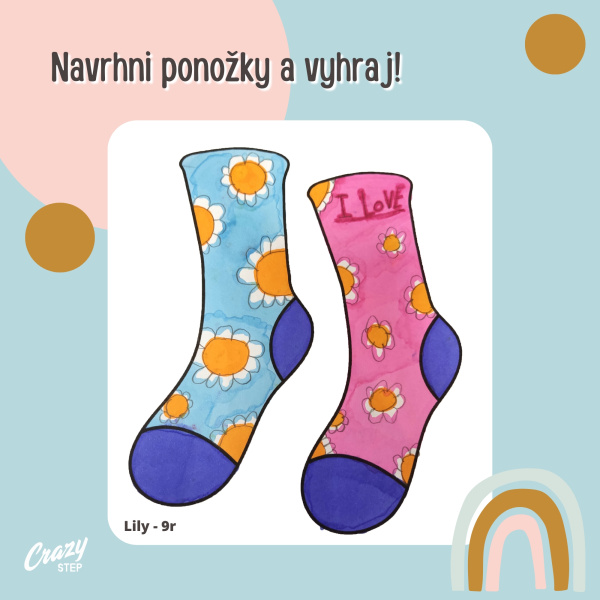 Keď sme vyhlásili súťaž „Navrhni nám ponožky CrazyStep“, netušili sme, akú úžasnú dávku fantázie, farieb a radosti od vás dostaneme späť. Deti z celého Slovenska nám poslali svoje jedinečné návrhy ponožiek, ktoré by si určite zaslúžili miesto v módnom ateliéri. Bolo pre nás veľkou radosťou prezerať si každý obrázok a obdivovať nápaditosť, akú v sebe nosia naši najmenší umelci. A preto vám dnes prinášame vyhodnotenie súťaže, galériu všetkých zaslaných návrhov a samozrejme – aj meno výhercu.