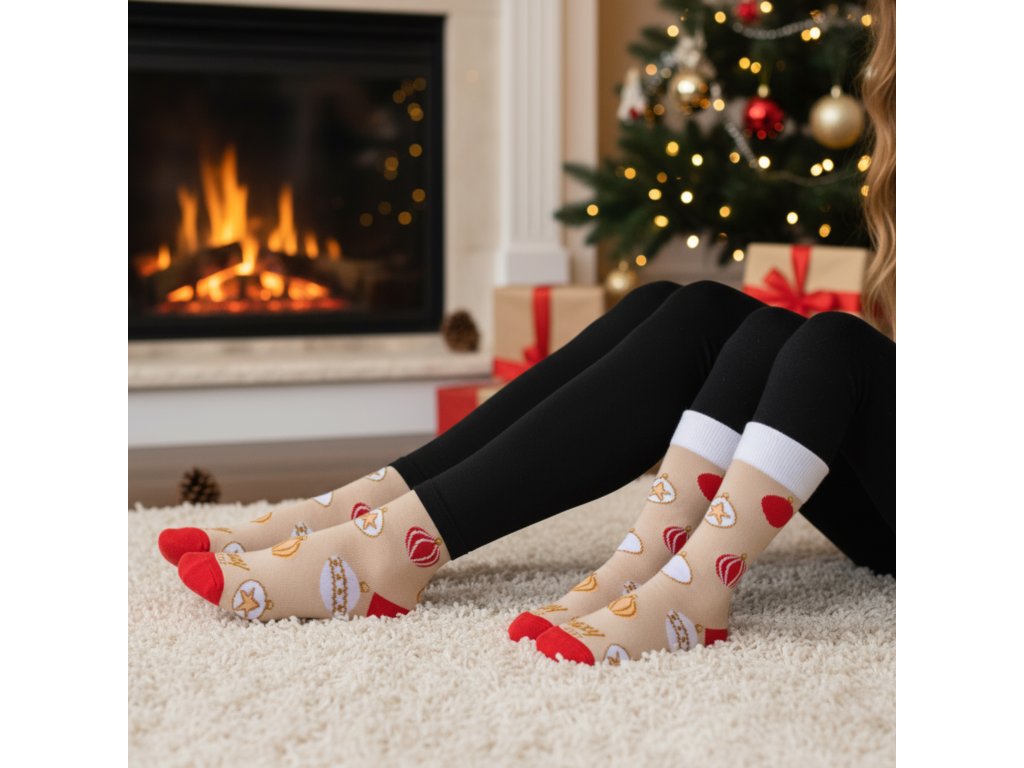 Veselé ponožky s motívom vianočných gúľ ti prinesú sviatočnú náladu aj do bežného dňa. Vianočné ponožky, ktoré zahrejú, rozveselia a pripomenú, že najlepšie darčeky sú tie, ktoré potešia aj pri každom kroku.