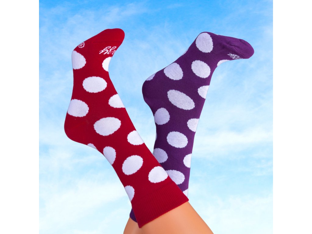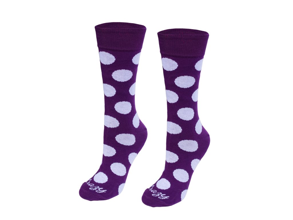 Fialové bodky sú veselé ponožky, ktoré ti okrem krajšieho dňa zaručia maximálnu spokojnosť:) Vysoký podiel bavlny a poctivá výroba na Slovensku ti garantujú 100% kvalitu. Obuj celú rodinu, pre veľkých aj malých.